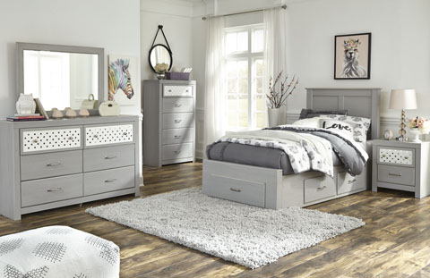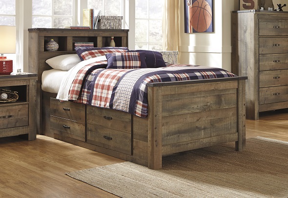 B446 Trinell Replicated Barnwood Panel Captains Bed w/Drawers on one side